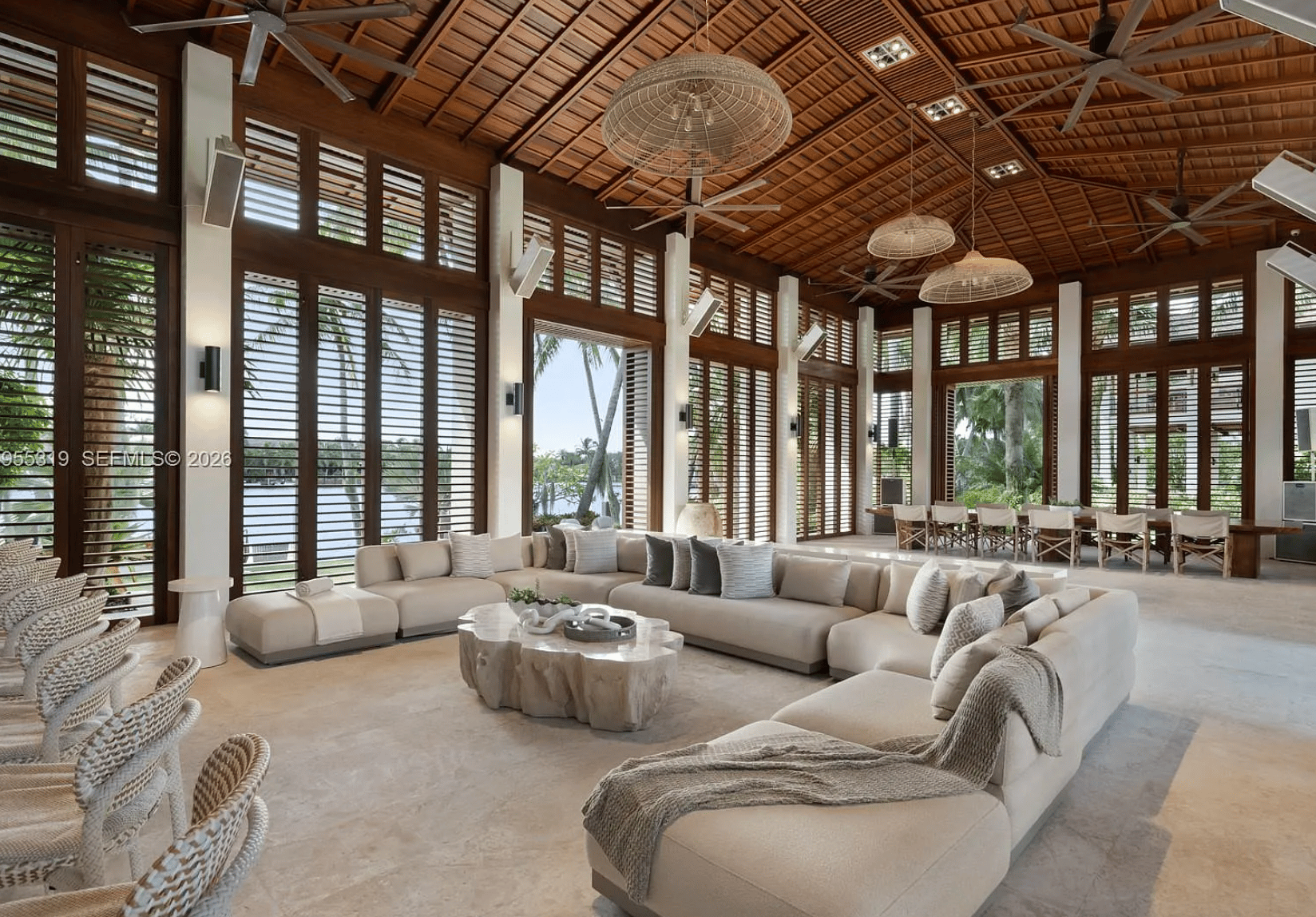 The estate’s most remarkable feature is its 335 feet of pristine private waterfront. Combined with over two acres of land, the setting offers exceptional privacy and sweeping water views, a rare opportunity within Miami’s exclusive luxury property market.