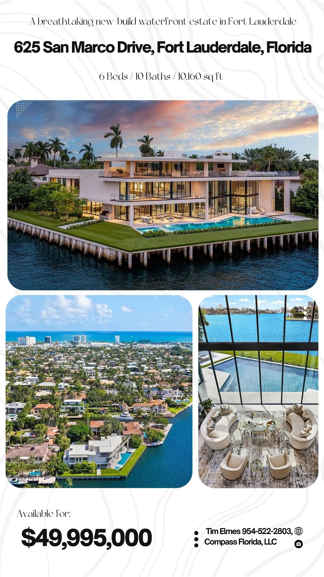 A breathtaking new new build waterfront estate in Fort Lauderdale, 625 San Marco Drive is a true masterpiece of modern design and coastal luxury. Designed by Carlos Martin Architects and built by Bomar Builders, this extraordinary three storey residence sits on a prime point lot with 277 feet of Intracoastal frontage, delivering uninterrupted panoramic water views.